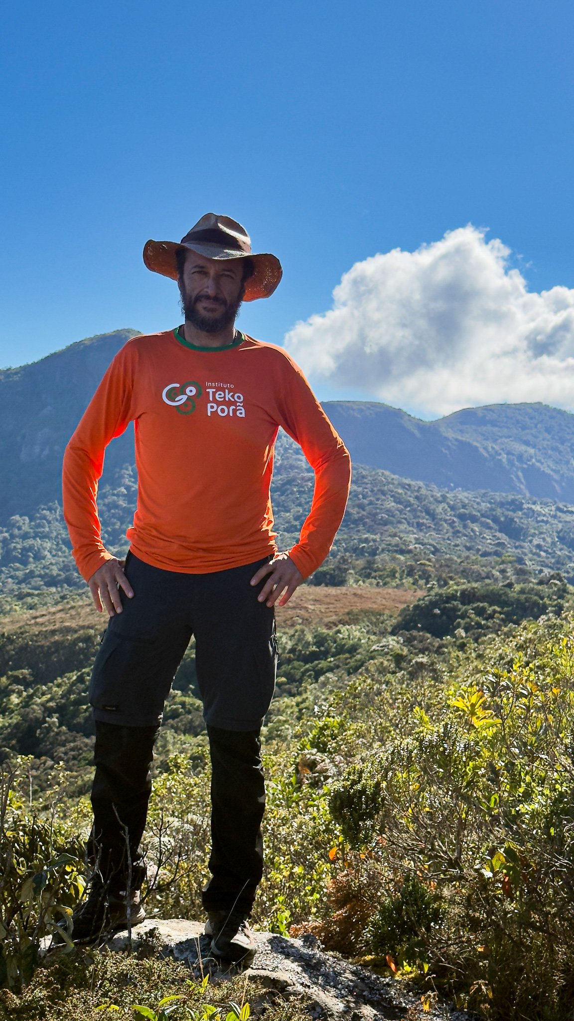 O FEAL foi uma experiência que eu sonhava há mais de 20 anos e não fazia ideia do que iria encontrar. Apesar de curtir atividades na natureza, nunca tinha feito um trekking de longa duração de 14 dias. Mergulhar nas vivências, nas relações e nos papéis que lidamos em cada momento, tendo a natureza como a nossa principal professora, foi um presente que me proporcionou muitas aprendizagens, mas a principal foi ter um tempo comigo mesmo. Algo difícil numa era de extrema conexão. Um mergulho para dentro de si, das memórias, dores, alegrias e sonhos e tudo com ajuda do silêncio da montanha e da plena escuridão das noites. Diante de um cenário singular, que foi a Serra da Mantiqueira e o Parque Estadual da Serra do Papagaio, aprendemos juntos, pois o grupo foi forte emocionalmente, mentalmente e fisicamente. Ao final formamos uma verdadeira egrégora de amizade, vínculo e amor que levaremos para o resto de nossas vidas. E isso é algo muito extraordinário. Aprendemos um com o outro e com nossos queridos instrutores sobre questões técnicas, relacionais e emocionais de uma forma profunda, leve, prática, objetiva e com sentido. Espero continuar com esse espirito de cuidado e conexão com a natureza, expressado pelo “Leave no Trace”, que dialoga com um princípio indígena do povo Guarani: Teko Porã, que em português é o Bem Viver, conexão plena e fluida entre os seres humanos e a natureza.